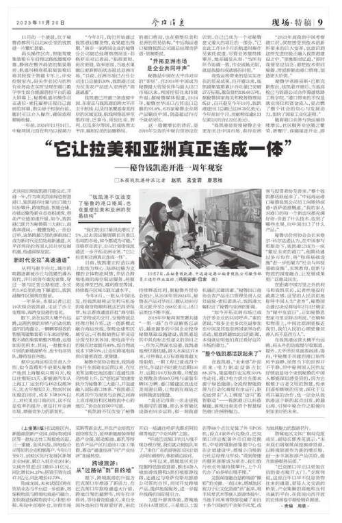 秘鲁学者路易斯·巴斯克斯指出,钱凯港开港后,当地高校已与铁路公司合作筹建铁路工程学院。“港口带来的不仅是就业岗位和资金流入,更点燃了整个社会的信心与发展动力,加快了国家工业化进程。”